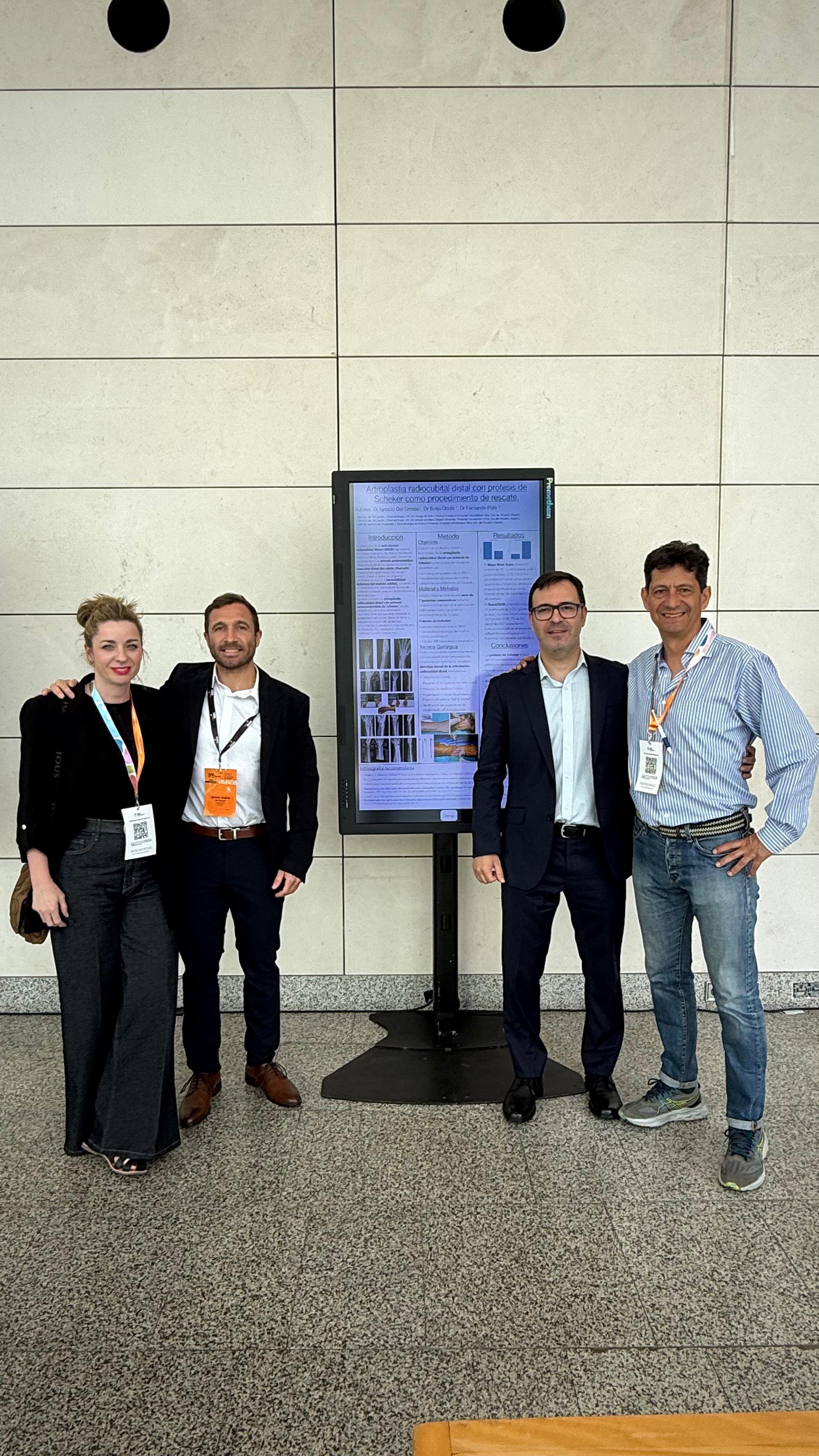 el Dr. Fernando Polo durante la mesa de casos clínicosLuís de Osma en la exposición del póster científico "Protocolo terapéutico para la tenosinovitis De Quervain"Irene Capellín exponiendo el póster científico “Tratamiento de fisioterapia en pacientes intervenidos de artroplastia total de muñeca con prótesis MOTEC: revisión de la literatura”.